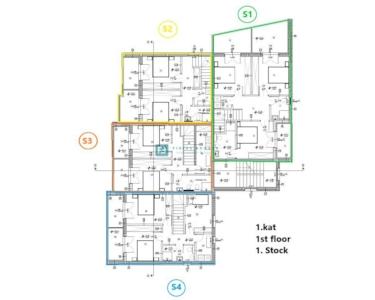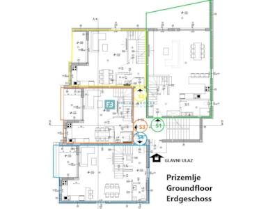 Zweistöckige Wohnung S1 mit einer Gesamtnutzfläche von 172,73 m2 (Nettowohnfläche 152,73 m2) + 140 m2 Garten + 2 Parkplätze von 25 m2. Im Erdgeschoss befinden sich ein Flur, ein Abstellraum, ein Badezimmer, eine Küche mit Esszimmer und ein Wohnzimmer mit Zugang zu einer überdachten Terrasse von 18,50 m2 und einem Garten. Eine Innentreppe führt in den ersten Stock, wo sich 3 Schlafzimmer, eine Eingangshalle, 2 Badezimmer, eine Waschküche, eine überdachte Terrasse und eine Loggia befinden. Der Preis beträgt 395.000 €.