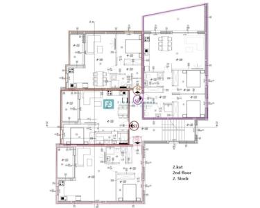 Zweistöckige Wohnung S2 mit einer Gesamtnutzfläche von 115,56 m2 (Nettowohnfläche 98,56 m2) + 110 m2 Garten + 2 Parkplätze von 25 m2. Im Erdgeschoss befinden sich ein Flur, ein Abstellraum, eine Toilette, eine Küche mit Esszimmer und ein Wohnzimmer mit Zugang zu einer Loggia von 5,90 m2 und einem Garten. Eine Innentreppe führt in den ersten Stock, wo sich 2 Schlafzimmer, eine Eingangshalle, ein Badezimmer, eine Waschküche und eine Loggia befinden. Der Preis beträgt 300.000 €.