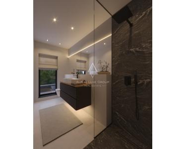 Am höchsten Punkt des Grundstücks befindet sich ein beheizter Swimmingpool mit 32 m², der ganzjährig nutzbar ist. Die Villa ist mit einer Fußbodenheizung über eine 8-kW-Wärmepumpe, Klimaanlagen in jedem Raum, Solarpaneelen mit einem 300-Liter-Boiler für Warmwasser sowie anthrazitfarbenen PVC-Fenstern mit elektrischen Rollläden und Insektenschutz ausgestattet. Zur hochwertigen Innenausstattung gehören begehbare Duschen, Geberit-Sanitärsysteme und maßgefertigte Innentüren. Alle Räume sind vorinstalliert für Satellitenfernsehen und WLAN. Das Garagentor ist per Fernbedienung oder Smartphone steuerbar.