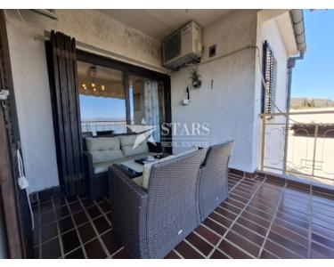 Sie befindet sich im zweiten und letzten Stock eines Gebäudes aus dem Jahr 1990, das nur drei Wohnungen umfasst. Obwohl das Gebäude nur wenige Wohnungen hat, sind der Hof und die Wohnung videoüberwacht, was Sicherheit und Privatsphäre garantiert. Die Wohnung hat einen eigenen Eingang und erstreckt sich über die gesamte Etage mit einer Gesamtwohnfläche von 101,20 m². Sie besteht aus drei Schlafzimmern, von denen eines ein eigenes Badezimmer und eine Ankleide hat, einem weiteren Badezimmer, einem Wohnzimmer, einer Küche mit Speisekammer, einem Esszimmer, einem Flur und einem überdachten Balkon mit Markise (8,30 m²). Der Balkon ist nach Süden ausgerichtet und bietet einen wunderschönen Blick auf das Meer. Er ist vom Wohnzimmer und vom Esszimmer aus zugänglich.
