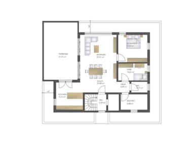 Freuen Sie sich auf insgesamt 125 moderne qm Wohnfläche mit einer HAMMERDACHTERRASSE.