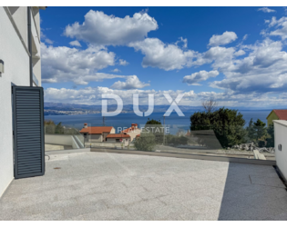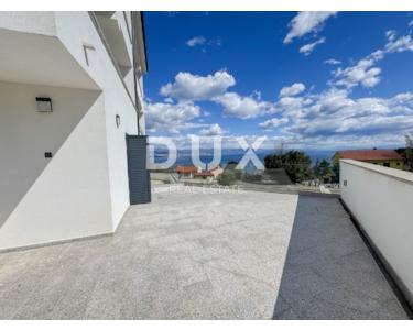 EXKLUSIV NUR IN DUX! Eine Rarität auf dem Markt – eine geräumige Wohnung im Erdgeschoss eines neuen Gebäudes in der Nähe von Opatija, Nettofläche 101 m2 (brutto 149 m2 + 100 m2 Garten!!!!). Dieses schöne Apartment bietet ein offenes Wohnzimmer mit Küche und Esszimmer, zwei geräumige Schlafzimmer, jedes mit eigenem Bad (insgesamt 2) und einen privaten Garten, der eine 59 m² große Terrasse und einen beeindruckenden 100 m² großen Garten umfasst. Die Wohnung wird komplett möbliert verkauft – mit Parkettboden, einbruchhemmenden Türen, hochwertiger Schreinerei, einer gepflasterten Terrasse und voll ausgestatteten Badezimmern inklusive Sanitäranlagen und Fußbodenheizung. In diesem Sinne ist die Wohnung bezugsfertig. Der fertige Garten bietet eine pergolaüberdachte Terrasse, einen Grillplatz und eine eigene Liegewiese. Darüber hinaus gibt es im Garten genügend Platz, um ein eigenes Schwimmbad zu bauen oder eine Sauna und einen Whirlpool zu installieren. Das Gebäude liegt in einer ruhigen und privaten Straße, leicht bergauf über dem Strand von Ičići. Zum Meer sind es zu Fuß nur 10 Minuten und mit dem Auto nur zwei Minuten. Die Entfernung auf dem Luftweg beträgt 800 Meter, auf der Straße sind es 2 km. In 10 Minuten mit dem Auto sind Sie im Zentrum von Opatija! Der Vorteil dieser Lage ist Ruhe, Privatsphäre, Grün, Meerblick und die Nähe zu Opatija. Vom Wohnzimmer, aber auch vom Garten aus hat man einen bezaubernden Blick auf das Meer und das Grün von Učka. Das Projekt wurde sorgfältig so konzipiert, dass jede Wohnung maximale Privatsphäre bietet, ohne die Nachbarn zu stören, und einen direkten Blick auf das Meer hat. Der große Vorteil dieses wundervollen Gebäudes ist der angelegte Garten mit exotischen und mediterranen Pflanzen und modernen Betonkonstruktionen. Beim Bau wurden äußerst hochwertige Materialien verwendet, die Fassade mit 10 cm Styropor-Wärmedämmung versehen und im FRÜHJAHR 2023 bezugsfertig sein. Das Parkett wird bis Februar 2023 verlegt. Im Preis inbegriffen sind ein ausgewiesener Parkplatz und ein Abstellraum im Freien. Dies ist eine einzigartige Gelegenheit, eine bezugsfertige Wohnung mit einem großen privaten Garten und einem unvergesslichen Meerblick zu kaufen.