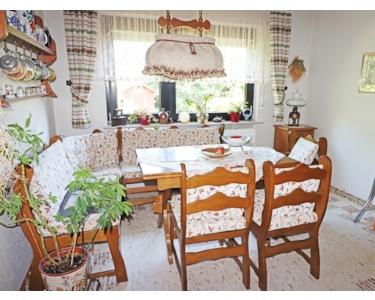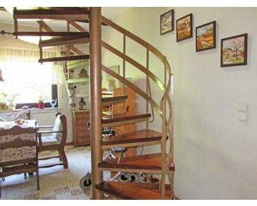 Das Erdgeschoss des Hauses teilt sich auf in eine geräumige Diele, mit angrenzendem, großen Wohnzimmer, ein Esszimmer mit Wendeltreppe ins Dachgeschoss, ein Schlafzimmer sowie Küche und Bad.