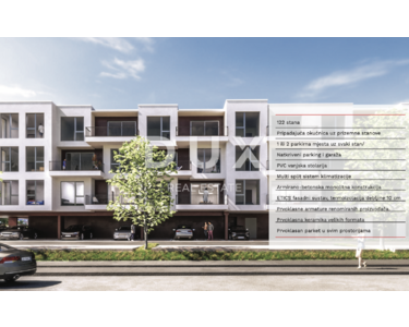 Gebäude Wir präsentieren Ihnen stolz ein exklusives Apartment mit einem Schlafzimmer im Erdgeschoss in einem der prestigeträchtigsten neuen Gebäude in Umag. Diese großzügige Wohnung mit einer Gesamtfläche von 54 m2 befindet sich im Erdgeschoss dieses imposanten Wohnhauses. Die Wohnung bietet Eleganz und Komfort, sie besteht aus einem geräumigen Wohnzimmer mit moderner Küche, einem luxuriösen Schlafzimmer, einem eleganten Badezimmer und einer Terrasse von 7 Quadratmetern. Die Wohnung verfügt außerdem über eine Lagerfläche von 2,60 m2 und einen Außenparkplatz, was Ihren Alltag äußerst praktisch macht. Dieses Apartmenthaus wurde mit professionellem Ansatz und Liebe zum Detail gebaut. Das Gebäude besteht aus einer monolithischen Stahlbetonkonstruktion mit Mezzaninplatten für zusätzliche Sicherheit und Stabilität. Im Inneren der Wohnungen sind Trennwände mit Gipskartonplatten in doppelter Stärke ausgeführt, die für eine hervorragende Wärme- und Schalldämmung sorgen. Die Fassadenverkleidung erfolgt im WDVS-System mit einer 10 cm dicken Wärmedämmung und sorgt so für Energieeffizienz. Hochwertige PVC-Zimmerei der neuen Generation mit elektrischen Jalousien bietet zusätzlichen Komfort und Sicherheit. Jede Wohnung ist mit einem Top-Multisplit-Heiz- und Kühlsystem ausgestattet, das für perfekte Temperatur und Wirtschaftlichkeit sorgt. Die Wohnungen verfügen über eigene Wasser- und Stromzähler und die Warmwasserbereitung erfolgt über einen Elektroboiler. Darüber hinaus verfügt jede Wohnung über einen Telefon-, Antennen-, TV- und Internetanschluss sowie eine integrierte Video-Gegensprechanlage für mehr Sicherheit. Die Wohnung ist in den Zimmern und im Wohnzimmer mit hochwertigem Parkett ausgelegt, während die Flure und Dielen mit edlen Fliesen ausgestattet sind. Mit hochwertigsten Materialien und Ausstattung bietet diese Wohnung nicht nur außergewöhnlichen Wohnkomfort, sondern eignet sich auch ideal zur Vermietung für touristische Zwecke. Die geplante Baufertigstellung ist Mitte 2025, sodass Sie schnell alle Vorzüge dieser Luxuswohnung genießen können. Die Lage ist perfekt, nur 700 Meter vom Meer und dem Zentrum von Umag entfernt, sodass Sie den ganzen Charme dieser wunderschönen mediterranen Stadt genießen können. Allgemeine Spezifikationen des Gebäudes: Erdgeschoss: - 1x Studio-Apartment mit Garten - 18x Apartments mit einem Schlafzimmer, Wohnzimmer, Terrasse und Garten - 5x Apartments mit zwei Schlafzimmern, Wohnzimmer, Terrasse und Garten - 43x Abstellraum 1. Stock: - 26x Wohnungen mit einem Schlafzimmer, Wohnzimmer, Terrasse und Garten - 7x Wohnungen mit zwei Schlafzimmern, Wohnzimmer, Terrasse und Garten - 16x Abstellraum 2. Etage: - 26x Wohnungen mit einem Schlafzimmer, Wohnzimmer, Terrasse und Garten - 7x Wohnungen mit zwei Schlafzimmer, Wohnzimmer, Terrasse und Garten - 16x Abstellraum 3. Etage: - 24x Wohnungen mit einem Schlafzimmer, Wohnzimmer und Balkon - 7x Wohnungen mit zwei Schlafzimmern, Wohnzimmer und Balkon - 1x Wohnung mit drei Schlafzimmern, Wohnzimmer, Balkon und Loggia - 14x Lagerraum Tiefgarage: - 74 Parkplätze - 33 Lagerplätze Tiefgarage: - 26 überdachte Parkplätze - 82 nicht überdachte Parkplätze Verpassen Sie nicht die Gelegenheit, stolzer Besitzer dieser Luxuswohnung in Umag zu werden und ein exklusives Lebenserlebnis zu genießen einer der attraktivsten Neubauten auf dem Markt. Für weitere Informationen und eine Besichtigung der Wohnung kontaktieren Sie noch heute unsere Agentur.