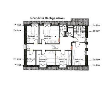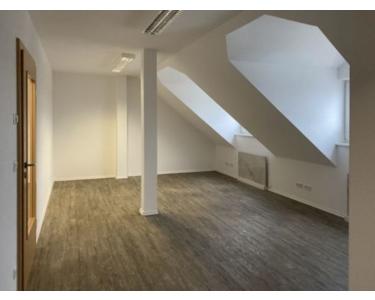 Im Dachgeschoss ist derzeit ein Büroraum vom Treppenhaus begehbar. Es sind mehrere Gauben vorhanden. Die EDV-Verkabelung verläuft in der Wand. Die WCs sind hell gefliest.