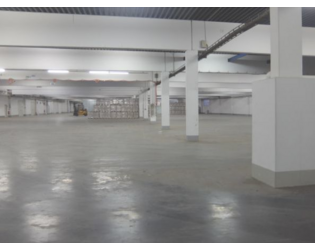 Die Halle mit einer Höhe von ca. 4 m UKB besteht aus zwei ineinander übergehenden Hallen, errichtet in Stahlbetonskelettbauweise mit Lichtbetonwänden, Glaselementen im oberen Bereich und Industriebetonestrichboden. Der Zugang an der Vorderseite verfügt über zwei große elektrische Aluminiumtore, eines davon ein Schnelllauftor. Auf der rückwärtigen Seite befindet sich der überdachte Rampen- und Anlieferungsbereich mit ebenfalls zwei Rolltoren, eines davon ein Schnelllauftor. An der seitlichen Hallenfläche befindet sich eine weitere Rampe mit großem Sektionaltor. Ein WC-Bereich ist von der Halle abgetrennt. Er ist hell gefliest und wird mit einer Lichtkuppel mit Tageslicht versorgt.