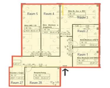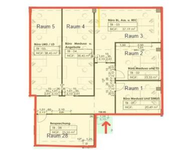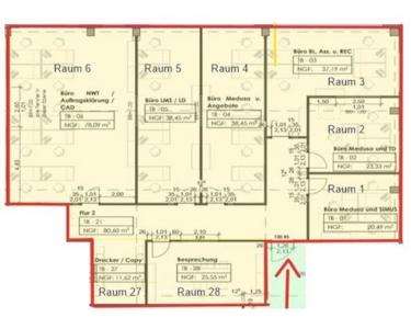 Die Räume befinden sich in einem Geschäftshaus und sind Teilfläche einer größeren Büroeinheit. Ein Glasfaseranschluss liegt im Haus. Die zur Vermietung stehende Fläche kann komplett oder teilweise angemietet werden. Gemeinschaftsräume wie Besprechungszimmer, Küche und WCs können mitgenutzt werden.