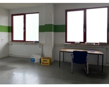 Das Bürogebäude ist im Erdgeschoss über einen repräsentativen Vorraum mit Empfang mit Natursteinboden begehbar. Hier befinden sich drei Großraumbüros mit Vinylboden, ein Aufenthaltsraum mit Laminat und Küchenzeile sowie eine hell geflieste WC-Anlage. Der Flur ist ebenfalls mit Naturstein ausgelegt. Der Innenhof ist über eines der Großraumbüros erreichbar. Die EDV- und Telefonverkabelung verläuft in Kabelkanälen und Bodentanks. Leuchten sind vorhanden. Es besteht Zugang zur Halle 1 und Halle 2.