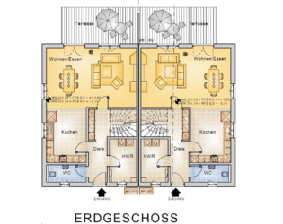 Die Doppelhäuser sind noch nicht erstellt und werden ähnlich den Einfamilienhäusern ausgestattet.
