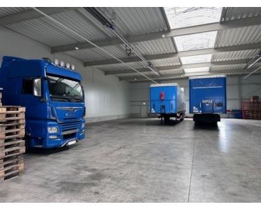 Die Halle mit Industrieboden hat eine Höhe von ca. 6,70 m und wurde in Sandwichpaneel-Bauweise mit einer Isolierung von 10 cm erstellt. An der Decke befindet sich ein elektrisch zu öffnendes Lichtband und Deckenleuchten. Das elektrische Sektionaltor ist ca. 4,50 m x 5 m. Stromanschlüsse sind ausreichend vorhanden. Das WC ist gemeinschaftlich zu nutzen.
