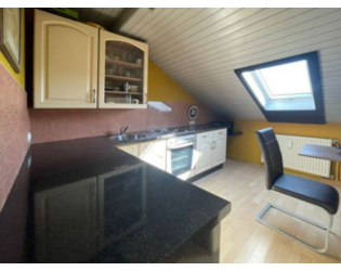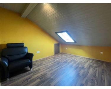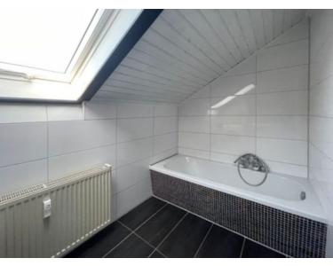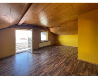 Im Dachgeschoss befindet sich eine 4-Zimmerwohnung, der ein kleiner Gartenanteil zugeordnet ist und teilweise saniert wurde. Sämtliche Decken sind mit Holz vertäfelt. Vom Flur aus gelangt man in alle Zimmer. Das helle mit Laminat ausgelegte Wohnzimmer erstreckt sich über die gesamte Südseite des Hauses. Es besteht direkter Zugang zum großzügigen und mit großen anthrazitfarbenen modernen Fliesen verlegten Südwestbalkon, von dem sich ein schöner Ausblick in die Natur bietet. Das separate WC ist hell gefliest. Das helle Bad mit Fenster, Wanne und Waschbecken ist ebenso modern gefliest und verfügt über einen Waschmaschinenanschluss. Die mit hellem Laminat ausgelegte Küche ist mit einer L-förmiger Einbauküche ausgestattet. Beide Schlafzimmer sind sehr hell und ebenso mit hochwertigem Laminat in Holzoptik ausgelegt.