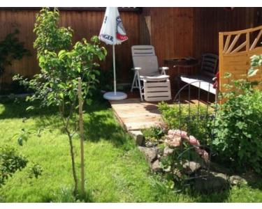 Der große Gemeinschaftsgarten kann von allen Bewohnern genutzt werden.