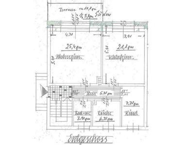 Im Erd- und Obergeschoss des Anbaus sind identisch geschnittene 2,5-Zimmerwohnungen. Vom Wohnzimmer aus ist die geflieste Südterrasse bzw. der Südbalkon begehbar. Das Schlafzimmer ist sehr geräumig. Das Bad ist mit Fenster, Wanne, Waschbecken, WC und Handtuchheizkörper ausgestattet und hell gefliest.