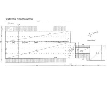 Halle 1 ist ca. 5 m hoch und mit Betonboden mit einer Traglast von 10 t/m². Derzeit sind zwei Tore mit ca. 4,50 x 4,50 m vorhanden. Die Halle kann mit einem LKW durchfahren werden. Im 1. und 2. Obergeschoss befinden sich Lager- und Büroflächen. Die Deckenhöhe beträgt ca. 3 m und der Betonboden ist mit einer Traglast von 1 t/m² belastbar. Erschlossen werden die beiden Etagen mit zwei Lastenaufzügen mit 2,5 t Nutzlast. Jede Etage ist aufgrund der Fensterbänder, die sich über die ganze Breite ziehen, sehr hell.