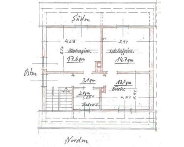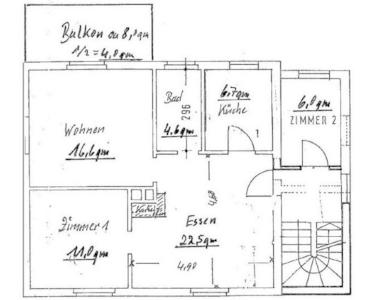 Die Dachgeschosswohnung ist mit der Obergeschosswohnung zusammengelegt. Eine Trennung ist durch geringe Umbauarbeiten möglich. Sie hat aufgrund des hohen Kniestocks gute Stellmöglichkeiten. Das Bad mit Fenster, Dusche, Waschbecken, WC und Waschmaschinenanschluss ist hell gefliest. Die Küche wird derzeit als Kinderzimmer genutzt.