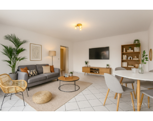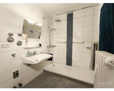 Helle Räume, große Fenster und ein offener Wohn- und Essbereich mit Balkon schaffen eine freundliche Atmosphäre. Besonders komfortabel: Dank Aufzug und Rampen ist die Wohnung barrierearm, dazu kommt ein 2014 modernisiertes, behindertengerechtes Bad.