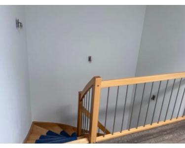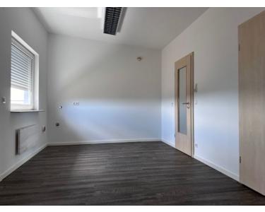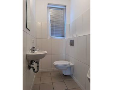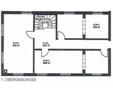Die Bürofläche 2 ist überwiegend mit Rollläden ausgestattet. Das Erdgeschoss ist gefliest und teilweise mit Deckenspots. In einem Büro befindet sich ein imposanter Holzofen als Blickfang. Das WC ist modern und hell gefliest. Vom großen Besprechungsraum ist über eine Holztreppe das Obergeschoss mit Laminatböden erreichbar. Vom Flur aus sind alle Büros begehbar.