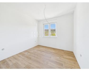 Die Wohnung umfasst zwei Schlafzimmer, ein Badezimmer, ein Wohnzimmer mit Küche und Essbereich im offenen Konzept, einen zusätzlichen Abstellraum sowie eine überdachte Loggia mit Blick auf das Meer und die Umgebung. Ein Parkplatz mit 4 m² Fläche ist im Eigentum enthalten.