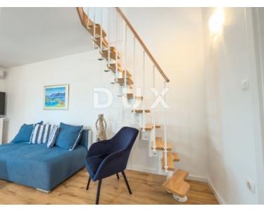Dieses schöne, modern eingerichtete Apartment mit 73 m² befindet sich in Njivice, an einem der attraktivsten Standorte auf der Insel Krk. Eine prächtige Terrasse mit atemberaubendem Panoramablick macht dieses Anwesen zu einer einzigartigen Gelegenheit für alle, die eine Kombination aus Luxus, Komfort und einer unvergesslichen mediterranen Umgebung suchen. Die Wohnung besteht aus einem geräumigen Wohnzimmer, einer Küche mit Essbereich, einem Badezimmer und zwei Schlafzimmern, von denen sich eines auf der Galerie befindet, wodurch ein besonderer Eindruck von Großzügigkeit und eleganter Dynamik des Raumes entsteht. Jedes Detail der Inneneinrichtung wurde sorgfältig gestaltet und die Wohnung wurde 2018 unter Verwendung hochwertiger Materialien und moderner Designelemente komplett renoviert. Was dieses Anwesen außergewöhnlich macht, ist sicherlich die große Terrasse, die einen der schönsten Panoramablicke auf der gesamten Insel Krk bietet. Es bietet einen zauberhaften Blick auf das Meer und die umliegende Natur, ideal für den Morgenkaffee, entspannte Abende oder unvergessliche Momente mit Familie und Freunden. Die perfekte Lage in einem ruhigen Teil von Njivice bietet schnellen Zugang zu Stränden, Promenaden und allen notwendigen Annehmlichkeiten, während die hochwertige Renovierung und das moderne Design diese Wohnung zu einer ausgezeichneten Wahl für Ihr eigenes Zuhause, einen Luxusurlaub oder eine Investition in eine Touristenvermietung machen. Verpassen Sie nicht die Gelegenheit, Eigentümer dieser Immobilie zu werden, die auf den ersten Blick fasziniert!