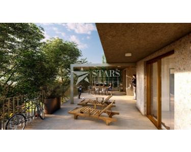 Das Gebäude besteht aus 40 Wohnungen und 4 Gewerbeeinheiten, verteilt auf 5 Etagen, mit Tiefgarage und Grünflächen.