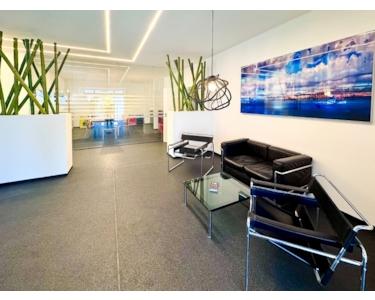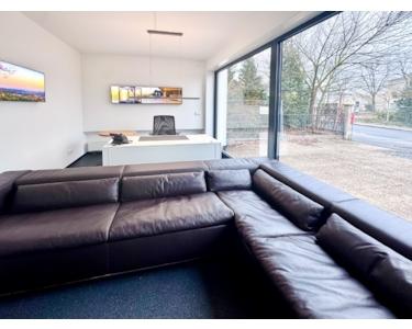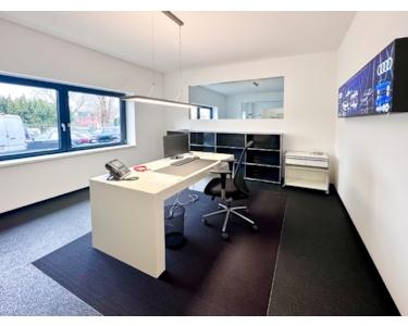 Im Objekt integriert ist ein einladender Empfangsbereich mit Showroom, mehrere Büro- und Besprechungsräume, Lagerfläche sowie Personal- und Sanitärbereiche.