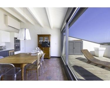 Dieses exklusive Anwesen bietet einen atemberaubenden Blick auf das Meer und die historische Kirche San Pantaleo, Symbol der lokalen Tradition, und bietet zu jeder Tageszeit einzigartige Ausblicke. Draußen stellt eine große bewohnbare Terrasse – mit der Möglichkeit einer Überdachung – den idealen Ort dar, um Momente der Entspannung zu genießen oder Gäste in einer Umgebung mit zeitlosem Charme zu empfangen.