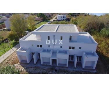 In außergewöhnlicher Lage in Privlaka, nur 110 Meter vom wunderschönen Sandstrand entfernt (nur drei Minuten bequemer Spaziergang), befindet sich dieser moderne Neubau mit nur sechs Wohneinheiten. In unmittelbarer Nähe befinden sich alle wichtigen Einrichtungen für ein komfortables Leben und einen komfortablen Urlaub – Geschäfte, Schule, Kindergarten, Restaurants und andere Annehmlichkeiten, die diesen Standort ideal für das Familienleben oder als Investition für den Tourismus machen. Das Gebäude wurde nach hohen Standards moderner Bauweise errichtet und jede Wohnung ist mit Fußbodenheizung und Klimaanlage in allen Zimmern ausgestattet, was das ganze Jahr über Komfort gewährleistet. Zu jeder Wohnung gehört ein eigener Parkplatz, für die Gäste stehen zusätzliche Parkplätze zur Verfügung. Die Fertigstellung der Arbeiten ist für Ende 2025 geplant. Besonders hervorzuheben ist die von uns angebotene Wohnung – es handelt sich um eine zweistöckige Wohnung mit eigenem Garten und einer großzügigen Terrasse im Erdgeschoss, die zum Genießen der Natur einlädt. Im Erdgeschoss befinden sich außerdem ein Wohnzimmer, eine Küche mit Essbereich, ein Schlafzimmer, ein Badezimmer mit Toilette sowie eine zusätzliche Toilette und ein Abstellraum. Im Obergeschoss befinden sich zwei weitere Schlafzimmer, ein zusätzliches Badezimmer und ein Balkon mit teilweisem Meerblick – der perfekte Ort für den Morgenkaffee oder die abendliche Entspannung. Privlaka ist ein ruhiger Küstenort, der für seine langen Sandstrände und das kristallklare Meer bekannt ist und zwischen dem historischen Nin und dem malerischen Zadar liegt. Hier finden Sie die ideale Kombination aus ruhiger familiärer Atmosphäre und der Nähe zu allen wichtigen Annehmlichkeiten. Zadar, nur 20 Autominuten entfernt, bietet ein reichhaltiges kulturelles und gastronomisches Angebot, einen internationalen Flughafen sowie zahlreiche Veranstaltungen und Aktivitäten das ganze Jahr über. Für weitere Informationen und eine Besichtigung können Sie sich gerne an uns wenden – wir helfen Ihnen gerne dabei, Ihr neues Zuhause oder Ihre ideale Investition im Herzen Dalmatiens zu finden.