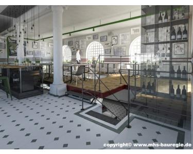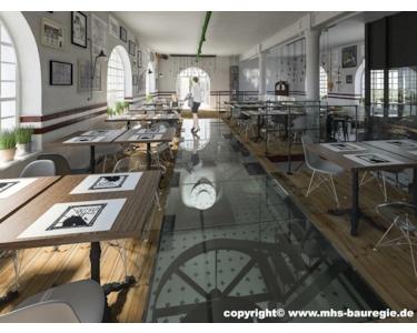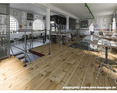 Im Pumpenhaus entstand ein Restaurant, 5 Gästezimmer, ein Frühstücksraum und ein Personalraum im Dachgeschoss. Das Restaurant hat mit Gastraum, Küche und sanitären Anlagen eine Größe von ca. 155 m². Hier können Ihre zukünftigen Gäste die noch funktionstüchtigen Pumpen können bewundern.