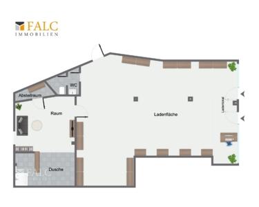 Neben der Ladenfläche stehen ein weiterer Raum, sogar mit Dusche, ein Abstellraum und ein WC zur Verfügung.