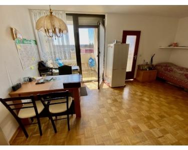 Isolierverglaste Holzfenster, Laminatboden im Schlafzimmer und Stäbchenparkett im Wohnzimmer, ein kleines Wannen-Duschbad und eine Einbauküche. Der Flur bietet Platz für einen Kleiderschrank (1,70m breit) und eine Garderobe.
