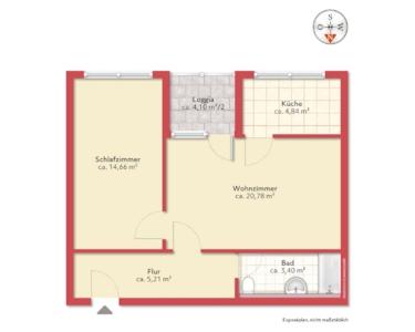 Die Wohnung eignet sich wegen ihres durchdachten Schnitts für eine Einzelperson aber auch für ein Paar oder eine Wohngemeinschaft.