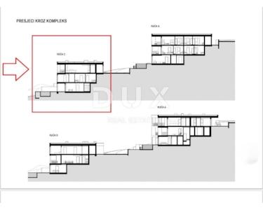 RIJEKA, KOSTRENA – exklusive Maisonette-Wohnung 212,23 m², Neubau mit wunderschönem Meerblick und Swimmingpool + Garten 153,70 m² – S2-C