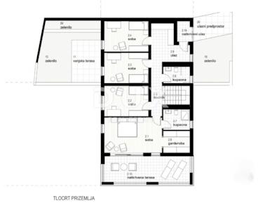 Wir bieten Ihnen eine Immobilie, die Ihnen modernes Design und Eleganz, Komfort und erstklassige Ausstattung bietet und sich in einer schönen, ruhigen Lage in der Nähe von öffentlichen Verkehrsmitteln, Schulen, Kindergärten, Einkaufszentren und zehn Autominuten von Rijeka befindet. Der Komplex aus 4 Wohnhäusern mit insgesamt 8 Wohnungen liegt nördlich der Adria-Autobahn im Gebiet „Zelena Kostrena“ von wo aus sich ein wunderschöner Ausblick auf die gesamte Kvarner Bucht bietet. In unmittelbarer Nähe gibt es 10 Kilometer gepflegte Wander-, Rad- und Fitnesswege, die durch die höchsten Teile von Kostrena vom Gipfel Solin bis zum Gipfel Sopalj führen. Die Zufahrt zu den Häusern erfolgt über die obere Straße, wobei eine Verbesserung und Erweiterung der bestehenden Straße geplant ist. Zu jedem Haus gehören vier Außenstellplätze, das heißt zwei Stellplätze pro Wohneinheit. Jedes Haus besteht aus zwei Wohnungen. Dabei liegen die Wohnungen der oberen beiden Grundstücke übereinander, während die Wohnungen der unteren beiden Grundstücke nebeneinander liegen. Zu jeder Wohnung gehört ein Gartenanteil. HAUS A Wohnung S2 - A: WOHNFLÄCHEN: - Zimmer 21.91 - Zimmer 14.20 - Zimmer 14.20 - Zimmer 14.20 - Flur 6.16 - Garderobe 6.17 - Badezimmer 5.68 - Badezimmer 4.59 - Eingang 12.05 - überdachte Terrasse 26.14 - Wohnzimmer / Esszimmer 42.20 - Küche 7.73 - Abstellraum 9.93 - Schrank 2.89 - Waschküche 3.84 - Flur 4.58 - Badezimmer 3.93 - Treppenhaus 5.43 - überdachter Eingang 3.31 WOHNFLÄCHEN GESAMT (m2): 209.14 m² NEBENFLÄCHEN: - Abstellraum 6.48 - Grünfläche 19.53 - Außenterrasse 13.05 - Grünfläche 10.14 - Grünfläche 49,11 - Außenterrasse 59,12 - Grünfläche 59,20 - Swimmingpool 30,84 - Grünfläche 36,54 - Grünfläche 3,33 - Grünfläche 17,82 - Eingangshalle 15,28 - Grünfläche 7,25 - Stellplatz 3 14,26 - Stellplatz 4 14,44 ZUGEWIESENE PLÄTZE GESAMT: 356,39 m² WOHNUNG S2-A GESAMTFLÄCHE: 565,53 m² Diese luxuriöse Wohnung ist auf maximalen Komfort ausgelegt. AUSSTATTUNG: Das Haus, in dem sich die Wohnung befindet, ist gut gebaut und luxuriös ausgestattet, alle eingebauten Materialien, Boden- und Wandbeläge entsprechen den höchsten Standards. - 10 cm dicke Fassadendämmung - Fußbodenheizung - Wärmepumpen - hochwertige Aluminium-Tischlerei. Zur Wohnung gehört ein eigener Garten und 2 PKW-Stellplätze. PREIS: Der angegebene Preis bezieht sich auf eine komplett fertiggestellte schlüsselfertige Anlage, ohne Möblierung. Der Preis beinhaltet die gesetzliche Mehrwertsteuer, der Käufer ist von der Zahlung der Grundsteuer befreit. Bei einem Kauf von einem in Kroatien registrierten Unternehmen ist nach dem Verkauf eine volle Mehrwertsteuerrückerstattung möglich. Sauberes und ordentliches Anwesen. Sicherlich eine wunderschöne Immobilie für luxuriöses Familienleben, aber auch als Investition in Form von Elitetourismus geeignet. EINZIGARTIGES ANWESEN, DAS IHRE AUFMERKSAMKEIT UNBEDINGT WERT IST UND IN EINER TOLLEN LAGE LIEGT!!! KOSTRENA Kostrena ist eine alte, beliebte Küstenstadt, die erstmals zu Beginn des 15. Jahrhunderts erwähnt wurde. Im Jahr 1874 erlangte die Stadt erstmals ihre kommunale Unabhängigkeit, die sie jedoch nur für sehr kurze Zeit, nämlich nur zwei Jahre, behielt. Es ist in zwei Teile gegliedert, St. Lucia und St. Barbara, nach den Namen zweier Kirchen, die es in dieser Gegend gibt. Kostrena liegt in unmittelbarer Nähe der Stadt Rijeka, eingerahmt von der Bucht Martinšćica und der Bucht von Bakar. Die Halbinsel Kostrena ist etwa 10 Kilometer lang und fällt sanft zur Küste hin ab. Auf seiner gesamten Länge gibt es wunderschöne Strände, die im Sommer von Tausenden von Badegästen besucht werden. Die bekanntesten und am meisten besuchten sind jene in der Bucht von Žurkovo, gefolgt von Smokvinovo, Svežanj, Spužvina, Podražica, Nova voda und Perilo. Kostrena besteht aus etwa zwanzig Siedlungen, von denen viele nach Familien benannt wurden. Die bevölkerungsreichsten Orte sind heute Vrh Martinšćice, Glavani und Sv. Lucija, Rožmanići, Doričići und Paveki. Ein charakteristisches Karstgebiet mit mediterraner Vegetation und der berühmten Kostrena-Grotte sowie ein mildes Klima, das manchmal starken Bora-Böen weicht, sind die Merkmale dieser Region.