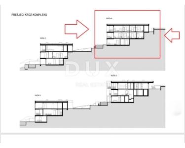 RIJEKA, KOSTRENA – exklusive Maisonette-Wohnung 209,14 m2 Neubau mit wunderschönem Meerblick und Swimmingpool + Garten 356,39 m2 – S2-A