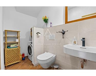 Eine stilvolle Treppe führt ins Obergeschoss, wo sich ein Flur mit Zugang zur Terrasse mit Meerblick befindet, ein Hauptschlafzimmer mit eigenem Bad und begehbarem Kleiderschrank, zwei weitere Schlafzimmer, ein zusätzliches Badezimmer sowie ein separater Waschraum.