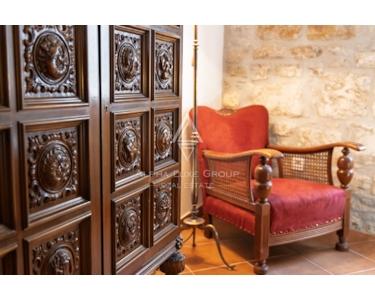 Zur Ausstattung gehören Drehstrom, eine Wärmepumpe, Fußbodenheizung im ganzen Haus, Klimaanlagen zur Kühlung, ein neuer Holzofen, ein Kamin, Videoüberwachung, Glasfaserinternet und komplett neue Geräte. Ein Großteil der antiken Originalmöbel verbleibt im Haus.