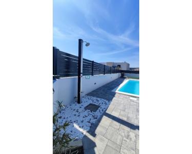 Das Haus verfügt über eine Gesamtnutzfläche von 197 m2 und erstreckt sich über drei Etagen: Keller + Erdgeschoss + Dachterrasse. Im Untergeschoss befindet sich ein 44,25 m² großer Mehrzweckraum. Über eine 12 m2 große Innentreppe gelangt man in das Erdgeschoss mit einer Gesamtfläche von 114,77 m2, das aus einem Eingang, Flur, Hauswirtschaftsraum, zwei Bädern, drei Schlafzimmern, einer geräumigen Küche mit offenem Esszimmer und einem Wohnzimmer mit Zugang zu einer schönen 20,70 m2 großen Terrasse besteht. Über eine geschlossene Treppe gelangt man auf eine 111,47 m2 große Dachterrasse, die als geselliger Außenbereich genutzt werden kann. Es verfügt auch über eine Whirlpool-Anlage.