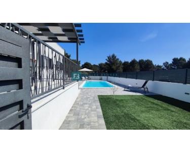 Das Haus ist aus hochwertigen Materialien gebaut und hat ein modernes Aussehen. Es ist ausgestattet mit einer Wasser-Fußbodenheizung in allen Räumen, Ariston-Klimaanlagen in allen Räumen, einem Heizsystem über eine Wärmepumpe, Vorbereitung für Sonnenkollektoren, einem Kamin, Qualitätskeramik in allen Räumen, PVC-Fenstern mit Rollläden, einer Steintreppe mit schmiedeeisernem Geländer, einer Pergola auf der Terrasse.