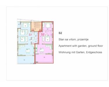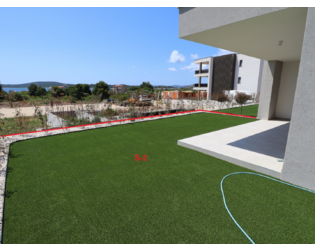 Zu verkaufen: Wohnung 82,55 m2, im Erdgeschoss eines Neubaus in Vodice. Mit angelegtem Garten, nur 350 m zum Strand.