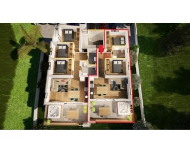 Es besteht aus 2 Schlafzimmern, Eingangshalle, 1 Badezimmer, Küche-Esszimmer-Wohnzimmer mit Zugang zu einer überdachten Terrasse von 18,80 m2. Zur Wohnung gehört ein großer gepflasterter Hof/Parkplatz und ein gepflegter Garten, mit einer Gesamtfläche von 133,50 m2. Die Gesamtfläche des oben genannten beträgt 210,85 m2.