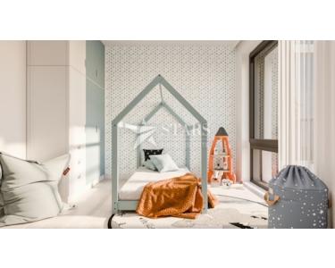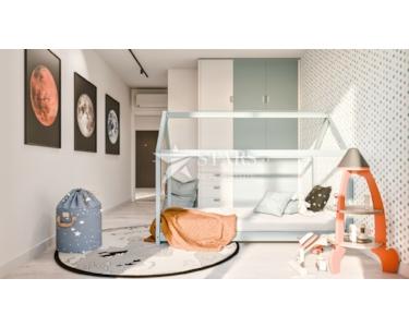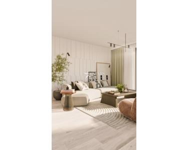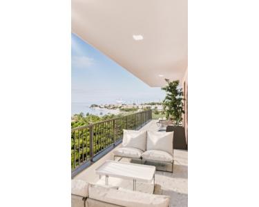 Die Wohnung verfügt über 86,64 m² Wohnfläche mit durchdachtem Grundriss: drei Schlafzimmer, zwei Badezimmer, ein großzügiger Wohnbereich mit Küche und Esszimmer sowie Zugang zu einem 26,50 m² großen Balkon. Der Balkon erweitert den Wohnbereich ins Freie und ist perfekt zum Essen im Freien, Sonnenbaden oder für den Morgenkaffee mit Meerblick.