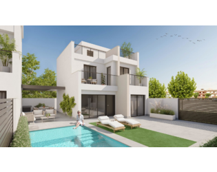 NEU GEBAUTE VILLEN IN LOS ALCAZARES~~Neubausiedlung mit 12 exklusiven, freistehenden Villen, jede mit privatem Pool und Dachterrasse, nur 150 m vom schönen Strand von Los Narejos und nur 2 Minuten zu Fuß vom belebten Rio Nalon mit seinen vielen Bars und Restaurants entfernt.~~Charakteristische Häuser, gebaut nach höchstem Standard in einer der besten Lagen am Mar Menor.~~Alle Villen haben eine Wohnfläche von über 120 m2 und einen privaten Garten von über 100 m2. Auf dem Grundstück steht ein Parkplatz zur Verfügung und ein 6 x 3 m großer privater Pool mit Sonnenterrasse ist ebenfalls vorhanden.~Alle Haushaltsgeräte sind vorhanden: Kühlschrank mit Gefrierfach, Backofen, Mikrowelle, Glaskeramikkochfeld, Dunstabzugshaube, Geschirrspüler, Waschmaschine und Mini-Kühlschrank in der Sommerküche.~Vorinstallation der gesamten Klimaanlage.~Innen- und Außenbeleuchtung, abzüglich der Zierleuchten.~Motorisierte Rollläden.~Im Erdgeschoss befindet sich ein heller Wohn-Essbereich mit offener Küche, ein Badezimmer und ein zusätzlicher Raum von 13 m2, der als drittes Schlafzimmer, als separates Esszimmer oder als Garage genutzt werden kann; dieser Raum hat Glastüren mit Panoramablick, die sich nach außen öffnen lassen und in denen bei Bedarf ein Auto geparkt werden kann (*Obwohl dieser Innenraum von den Eigentümern nach Belieben genutzt werden kann und als Schlafzimmer hergerichtet wird, wird er in der Urkunde als Garage eingetragen). Es gibt auch einen Außenlagerraum und eine Poolpumpe im hinteren Innenhof. Im ersten Stock befindet sich das Hauptschlafzimmer mit eigenem Bad, zwei Einbauschränken und direktem Zugang zu einem Balkon, sowie ein weiteres Doppelschlafzimmer mit Einbauschränken und Zugang zu Balkonen. Ein drittes Familienbadezimmer befindet sich ebenfalls in der ersten Etage.~Eine Treppe führt vom ersten Stock zu einer privaten Dachterrasse mit Sommerküche mit Spüle, Arbeitsfläche und einem Schrank mit einem Mini-Kühlschrank. Dank der Lage am Meer hat man von der Sonnenterrasse aus eine fantastische Aussicht.~Energieeffiziente Wärmedämmung und hohe Schallisolierung.~Duschabtrennungen in zwei Varianten verfügbar.~TV- und Telefonanschlüsse im Wohnzimmer, in den Schlafzimmern und auf der Sonnenterrasse.~Innentüren, Schreinerei und Einbauschränke in Weiß.~Doppelverglasung mit optimalem Sonnenschutz.~Warmwassersystem über einen elektrischen, regelbaren Boiler und 1,5-kW-Photovoltaik-Solarzellen.~Vorinstallation für ein Ladegerät für Elektroautos.~~~Los Alcazares ist ein beliebter Küstenort, in dem Sie Geschäfte, Bars, Restaurants, Supermärkte, Apotheken, ein Gesundheitszentrum, einen Taxistand und Bushaltestellen finden.~Die Verkehrsanbindung ist hervorragend, die Autobahn AP7 ist ganz in der Nähe.~Der internationale Flughafen von Murcia ist weniger als eine halbe Stunde entfernt (40 km) und der Flughafen von Alicante ist in weniger als einer Stunde zu erreichen (93 km).~Das prestigeträchtige Roda Golf & Beach Resort mit seinem von Dave Thomas entworfenen 18-Loch-Platz ist nur 2,5 km entfernt.~