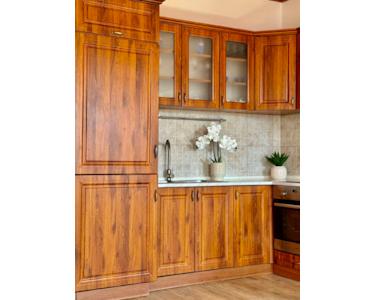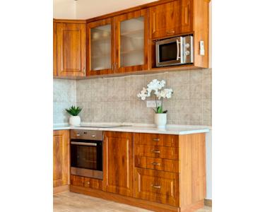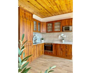 -Küche auf TUFA-Säulen gebaut, und mechanisierte Küchenmöbel von einem Tischler gefertigt, deren Möbel ebenfalls von einem Tischler aus Eiche gefertigt wurden
