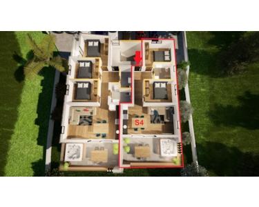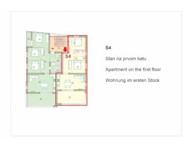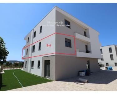 Die Wohnung befindet sich im ersten Stock eines Gebäudes mit insgesamt 6 Wohnungen und besteht aus 2 Schlafzimmern, Eingangshalle, 1 Badezimmer, Küche-Esszimmer-Wohnzimmer, überdachter Terrasse. Zur Wohnung gehören 2 Parkplätze.