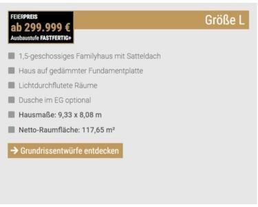 Der Angebotspreis ist inklusive Grundstück und bezieht sich auf die Standard-Ausbaustufe Fast-Fertig-Plus. Ihre