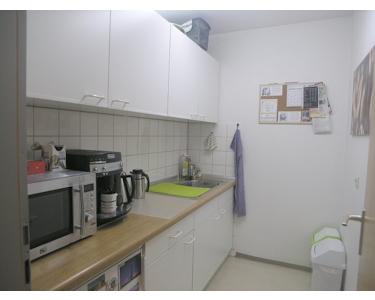 In diesem repräsentativen Gebäude Baujahr 1988 befinden sich im 1. OG mit Lift, diese Moderne und helle Büroräume mit ca. 118 m². Die Räumlichkeiten zur alleinigen Nutzung (insg. ca. 83 m²) sind aufgeteilt in 2 großzügige Büroräume, ein großes Wartezimmer das als weiteres Büro genutzt werden könnte und ein Abstellraum. Die Gemeinschaftsräume umfassen ca. 35 m² und sind aufgeteilt in einen weiteren Kunden-Wartebereich, Küche mit EBK, Stehtischbereich, 2 separate WC (1 davon zusätzlich mit Herrentoilette) mit jeweils einem Waschbecken.