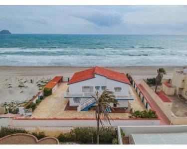 MAYMAR präsentiert diese freistehende Villa in erster Meereslinie, gelegen in der Straße Polígono T in La Manga – einem der exklusivsten und begehrtesten Küstenabschnitte Murcias.~~Direkt am Mittelmeer gelegen, bietet diese Immobilie eine privilegierte Lage in einer ruhigen Umgebung mit unvergleichlicher Naturschönheit. Nur wenige Schritte vom Strand entfernt – ideal zum Wohnen oder als renditestarke Investition.~Die Villa verfügt zudem über einen direkten Zugang zum Strand, ein echter Luxus, der Privatsphäre und Komfort vereint.~~Mit einer Gesamtfläche von 700 m2 erstreckt sich diese eindrucksvolle Villa über zwei Etagen und befindet sich in einem sehr guten Erhaltungszustand – sofort bezugsfertig oder individuell gestaltbar. Ihre Großzügigkeit und Einzigartigkeit machen sie zu einer seltenen Gelegenheit.~~Im Erdgeschoss befindet sich eine große Terrasse mit direktem Meerblick, ideal für entspannte Stunden im Freien. Der Tagesbereich umfasst ein helles Wohn-Esszimmer und eine funktionale Küche. Im Obergeschoss ergänzt ein privater Balkon mit Panoramablick die Nachtzone mit fünf Schlafzimmern und vier gut dimensionierten Badezimmern.~~Dank der südöstlichen Ausrichtung genießt das Haus ganztägig natürliches Licht, was die warme Atmosphäre und die Nähe zum Meer unterstreicht.~Meerblick aus fast allen Räumen rundet dieses exklusive Angebot ab.~~Eine gut erhaltene und vielseitige Immobilie mit privatem Strandzugang, für alle, die Raum, Privatsphäre und das Privileg des Wohnens direkt am Meer schätzen.~~