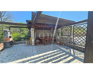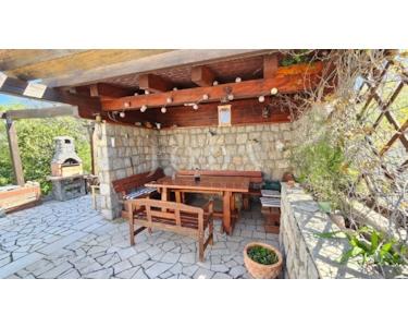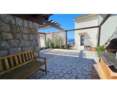Von der Wohnung aus führt eine gemauerte Brücke zum schönsten Teil des Anwesens, einem 52 m2 großen, gepflasterten Garten im Grünen, mit einem gemauerten Pavillon, einem Raum für geselliges Beisammensein und einem herrlichen Blick auf das Meer.