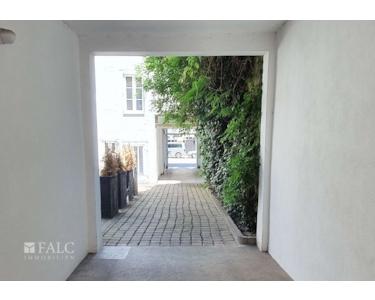 Im ersten Innenhof befindet sich der Zugang zu einer attraktiven Gewerbeeinheit, die ebenerdig zum Garten gelegen ist und über eine eigene Unterkellerung verfügt. Der Hauptraum ist großzügig und länglich geschnitten, ideal für vielseitige Nutzungsmöglichkeiten. Zwei Türen führen in den hinteren Bereich: Eine führt zu einer praktischen kleinen Küche, einem Badezimmer und geräumigen Abstellräumen, während der andere Zugang zu einem separaten, kleineren Büroraum/Behandlungsraum führt.