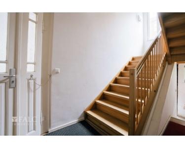 Diese charmante Einheit erreicht man über das Treppenhaus im Durchgang zum ersten Innenhof. Nachdem das Gebäude unter Denkmalschutz gestellt wurde, blieb dieser Bereich zunächst ungenutzt. Nach der Aufhebung des Schutzes wurde die Fläche umfassend saniert. Im vorderen Bereich blieben historische Details wie Balken, Durchgänge und alte Flügeltüren erhalten, was den besonderen Charakter der Räume unterstreicht. Um zusätzliche Helligkeit und Abwechslung zu schaffen, wurden teils stilvolle Milchglas-Elemente eingesetzt.